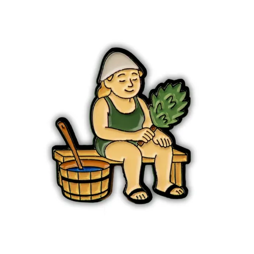 This enamel pin portrays the calm presence of a Finnish woman enjoying her sauna ritual.